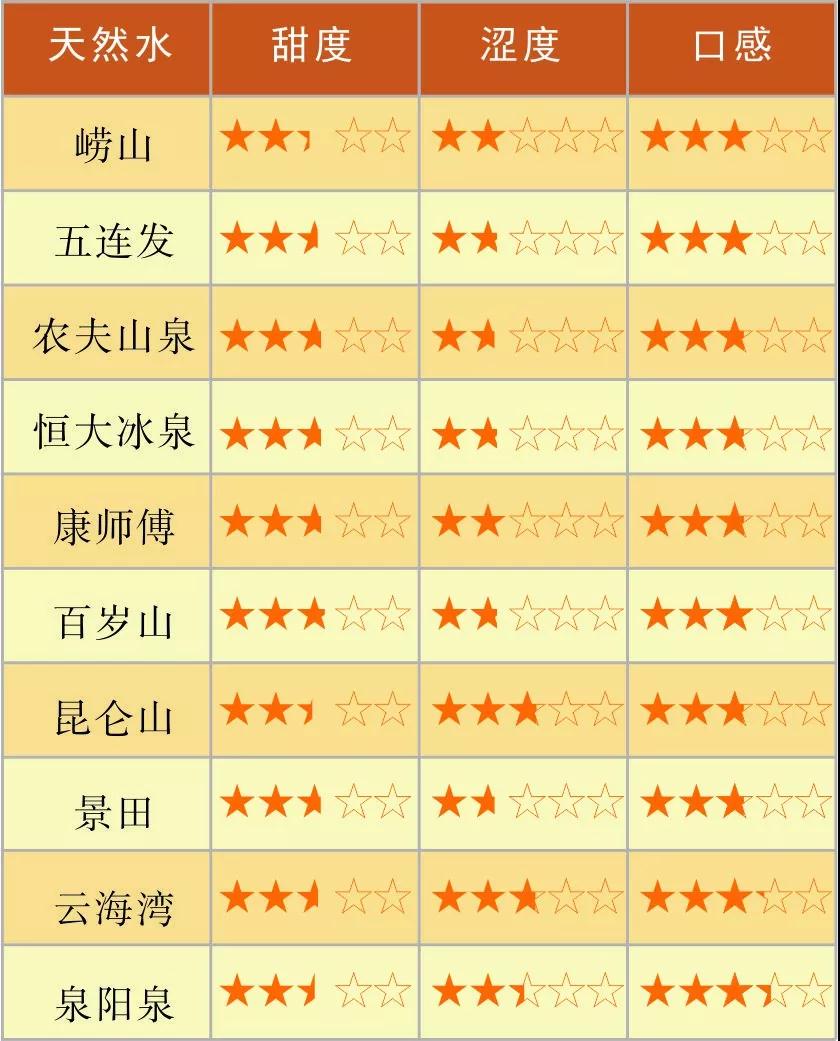 讀者根據(jù)品嘗到的瓶裝水,從甜度、澀度、口感三項(xiàng)進(jìn)行打分。